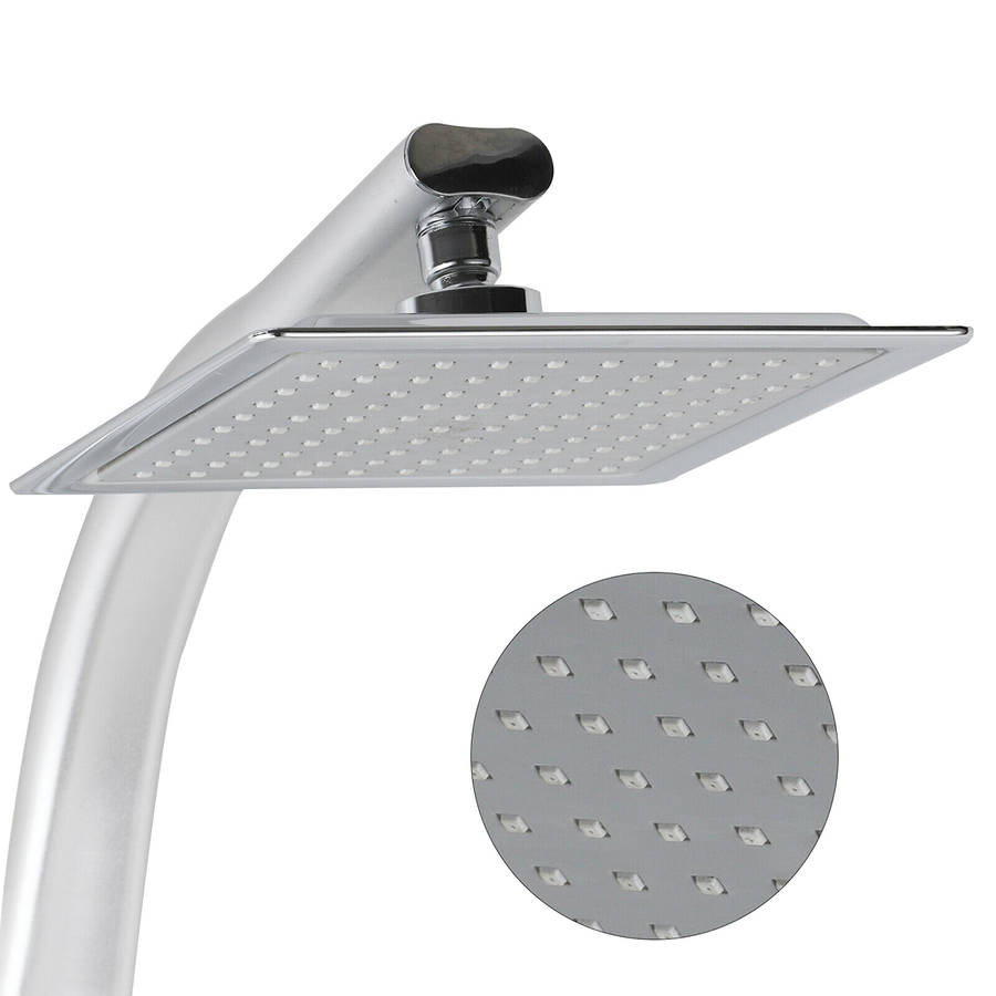 Shower Head/Hand Shower | Finished product: chrome plated Material: ABS plastic Size: 200mm x 200mm The gray rubber nozzle makes cleaning easier and ensures that the water flows smoothly and strongly. |