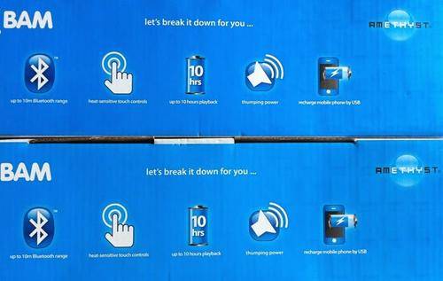 Shox Bam Amethyst - brand new in original packaging with all accessories and booklets. Features 10 hour replay on battery, audio input (cable included), Bluetooth, USB charging output for phone, incredible sound clarity and bass.NICH47/48