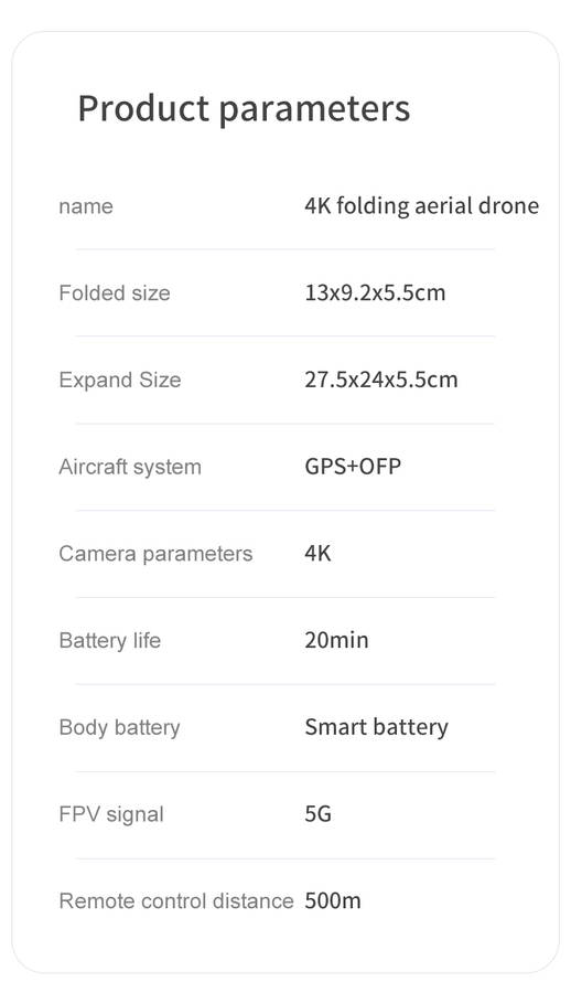 Quadcopter Size: 27.5 * 24 * 5.5cm (Unfoldable), 13 * 9.5 * 5.5cm (Foldable)