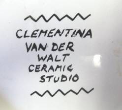 A side plate from the studio of Clementina van der Walt, one of South Africa's foremost ceramic artists. Condition good. Diameter 180 mm.