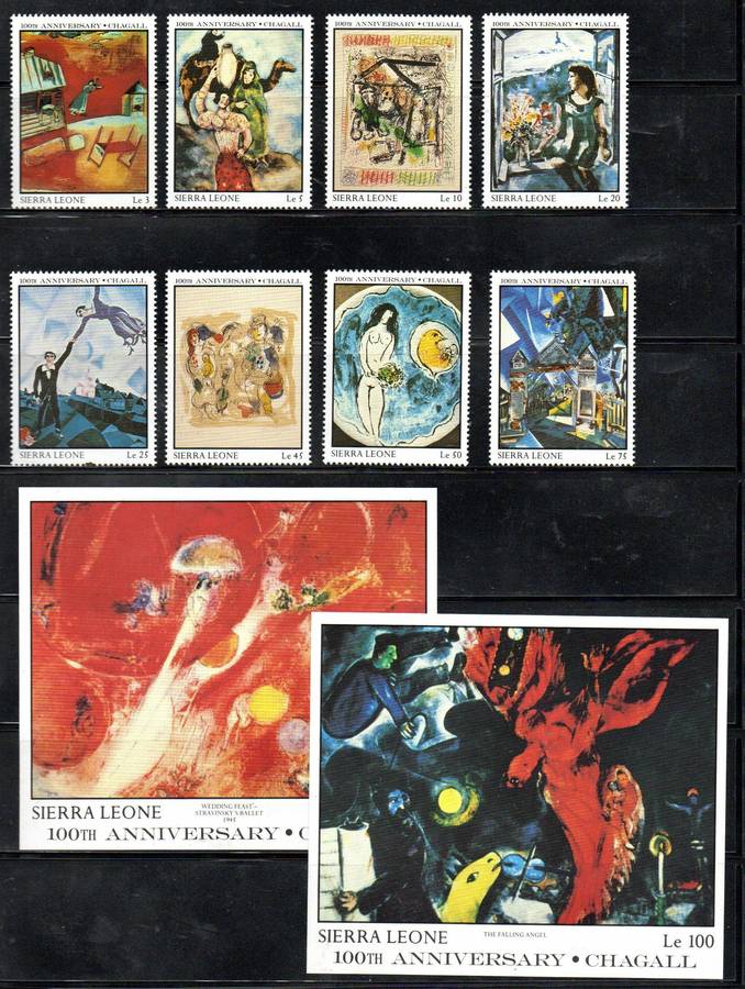 Sierra Leone 1987 Marc Chagall (artist) umm set of (x8) + msheets  SG1048-MS1056  CV GBP 18+. Sierra Leone 1987 Marc Chagall (artist) umm set of (x8) + msheets  SG1048-MS1056  CV GBP 18+. Sierra Leone 1987 Marc Chagall (artist) umm set of (x8) + msheets  SG1048-MS1056  CV GBP 18+.