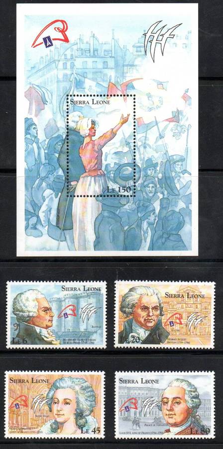 Sierra Leone 1989 Bicent of French Revolution umm set of (x4) + msheet  SG1243-MS1247 CV GBP 8. Sierra Leone 1989 Bicent of French Revolution umm set of (x4) + msheet  SG1243-MS1247 CV GBP 8. Sierra Leone 1989 Bicent of French Revolution umm set of (x4) + msheet  SG1243-MS1247 CV GBP 8.