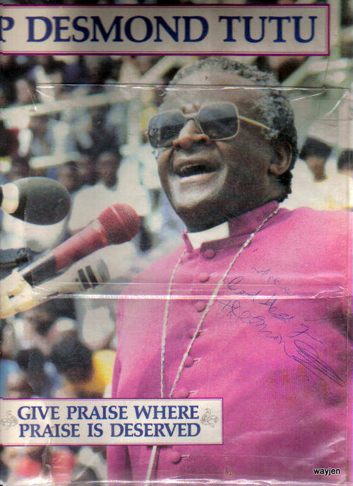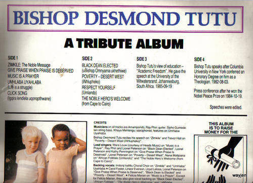 SIGNED!!!!!!!!!! BISHOP DESMOND TUTU RECORD ALBUM. GIVE PRAISE WHERE PRAISE IS DESERVED.