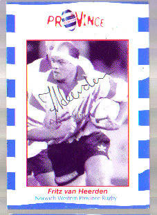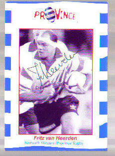 SIGNED FRITZ VAN HEERDEN CARD. WESTERN PROVINCE RUGBY.