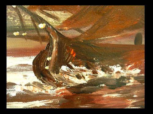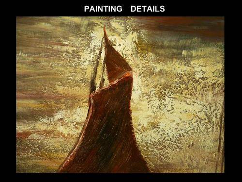 Medium: Oil on unstretched canvas, painted by palette knife, applied thickly in places.