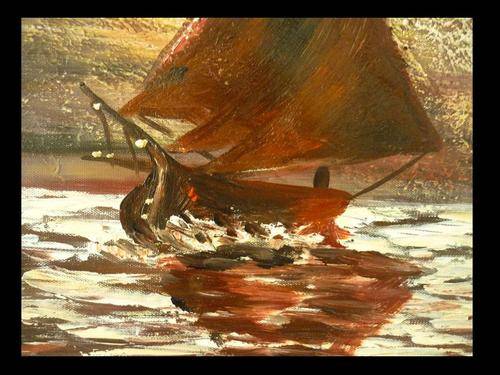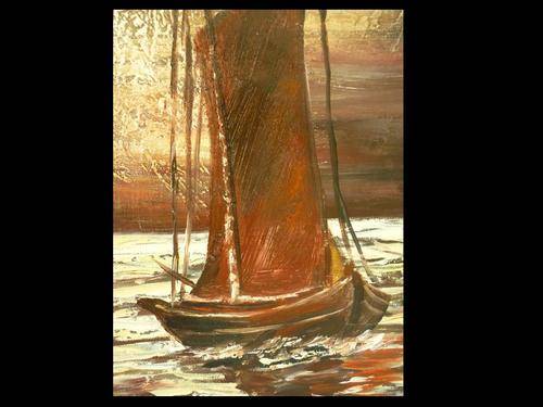Theme: The painting depicts two boats sailing in a calm ocean.