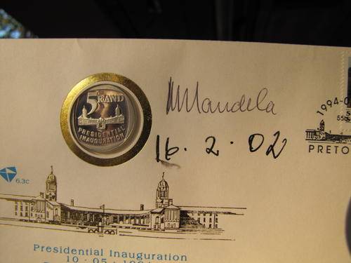 Mr Mandela hand touched the ink on the 16 th when he signed the First Day Cover