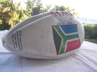 These are the names of the 1995 Worldcup Winners! This ball was signed for the driver of the Springbok bus at that time.