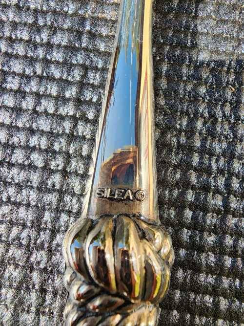 MARKINGS: THE COMPANY NAME 'SILEA' IS ON THE KNIFE AND FORK HANDLES The Silea Glass and Silver Company, is a high-end manufacturer of quality gifts based in Paris France. Starting in 1970s they are still in business.