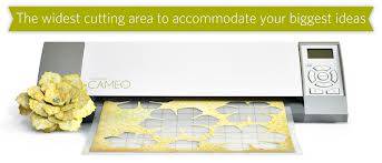 The Silhouette CAMEO™ is an electronic cutting tool for personal use. Like a home printer, it plugs into your PC or Mac® with a simple USB cable. However, instead of printing it uses a small blade to cut paper, cardstock, vinyl, fabric and more up to 12" wide and 10 feet long.
