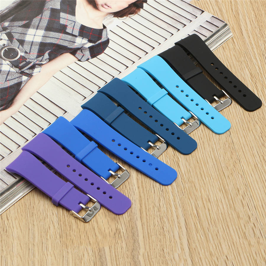 Compatible with: Samsung Gear Fit 2 Color: Black, Blue, Dark Blue, Light Blue, Purple Strap Lenght: 4.33-6.10 inch (Adjustable) Material: Silicone