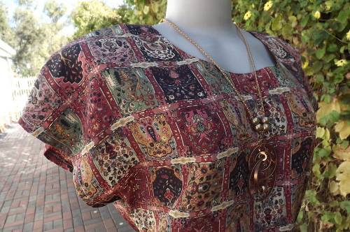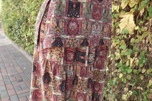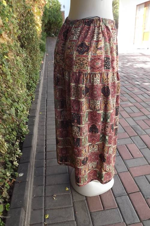 Silky polyester 2 piece outfit in a baroque pattern.Boutique made size 37/13.Yoked skirt.