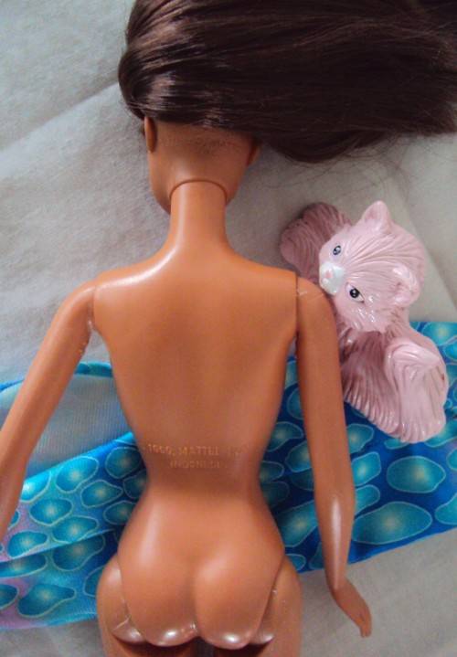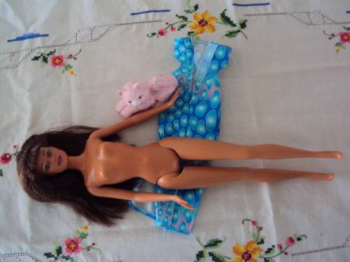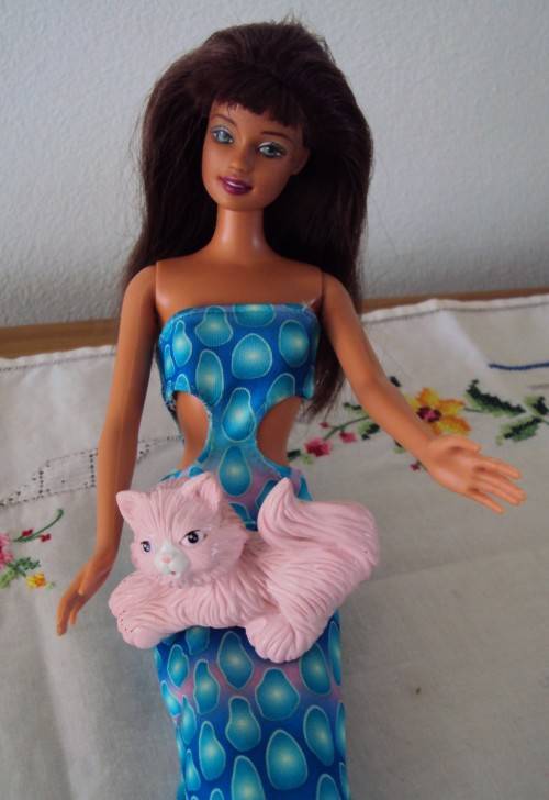 Silky soft hair Barbie in peep hole sheath dress, bendable legs, plus her pink cat - Mattel VGC
