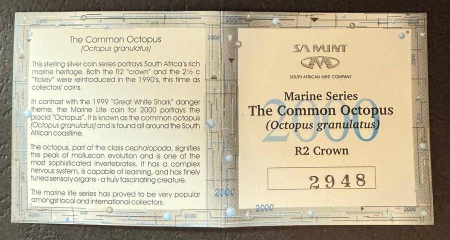 SILVER 1 OUNCE - Silver Proof R2 - The Common Octopus - Mintage 3344 - with COA
