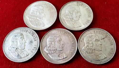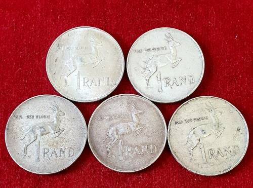 ON AUCTION: 5 X SILVER ONE RANDS 1966.