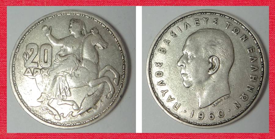 Silver 20 Drachma of Greece of 1960