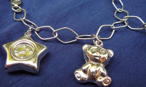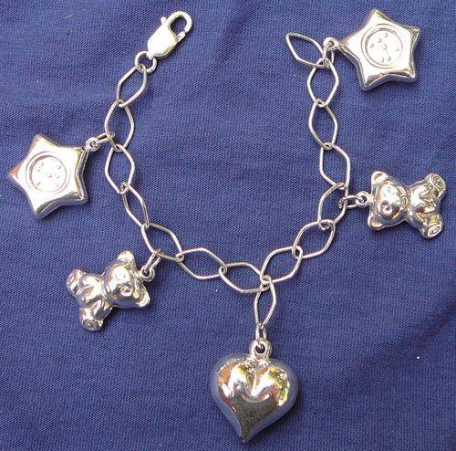 The chain of this cute little Charm Bracelet is 190 mm long, the links are 8 mm wide. The Heart Charm measures 25 mm x 21 mm. It weighs 22.1 grams