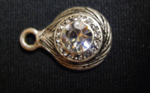 Silver Alloy Pendant with Clear Rhinestone, 20mm x 14mm - Sold Individually.