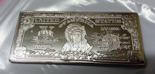 SILVER BEAUTY! 5 DOLLAR BULLION BAR - PLATED (USA) - NEW! (WEIGHT 33g).