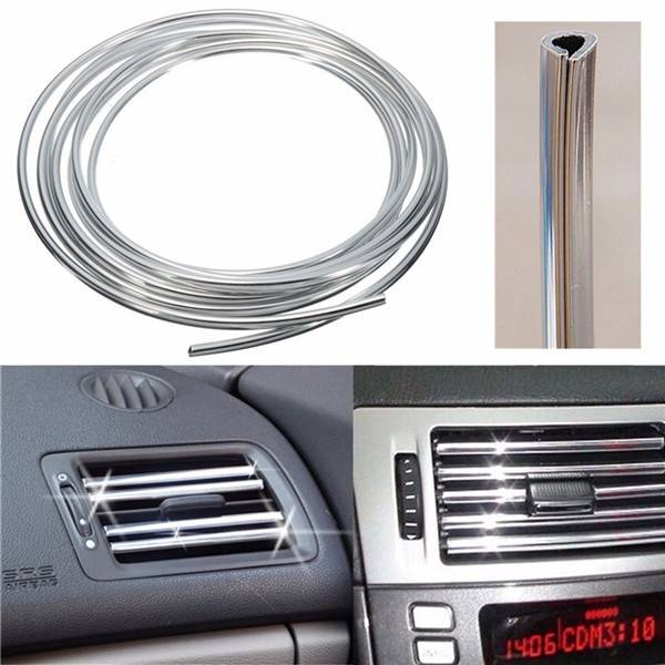 Chrome vent strip, perfect decoration for car's air conditioner rim, grille rim, etc. Make your car shining and more unique. U style, easy installation, simply slot on to existing rims. 4 meters long, flexible, easy to cut it into the suitable length you need.