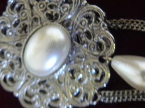 STUNNING DETAILED SILVER COLOURED BROOCH WITH FAUX PEARLS
