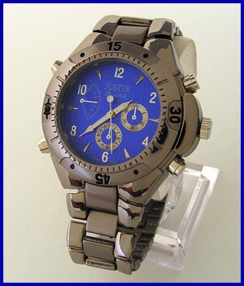 SILVER JUSTIN WATCH WITH BLUE FACE