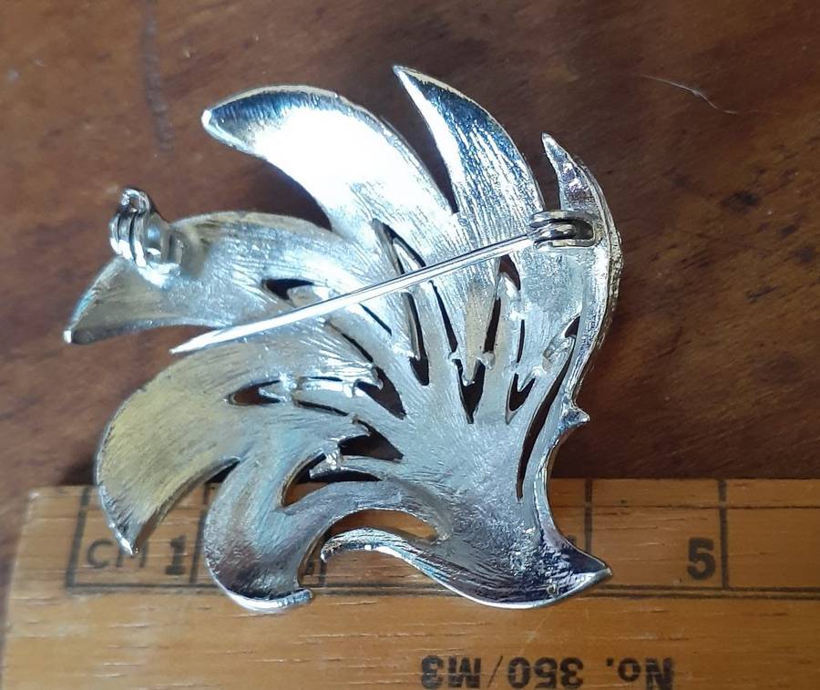 A good quality styalized vintage tree brooch in silver metal.  No issues noted.  It is an unusual design.  Clasp is good.