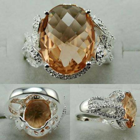 SILVER & MORGANITE RING - SIZE : 7.5