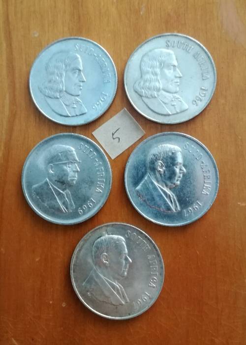 Silver on rands x 5 ( 1966A, 1966 E, 1967 E, 1969 A and 1969 English )