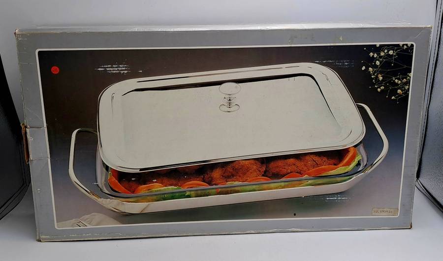 POSTAGE WILL BE COMBINED: Collection in Mondeor Johannesburg:Tip: To save on shipping -Buy more than one of My 2000+ ItemsSilver Plated 3 Quart.Oblong Open Food Baker unused still in BoxRemovable Glass Liner Metal lid and frame46cm x 26cm x 12cm-Please see ALL IMAGES - Multiple Images Uploaded - The pictures of the items form part of the descriptionDue to the age of many of our Items there might be some Flaws and Imperfections.Colours depicted in the photos of items may differ from the actual colour of the items due to many factors including the light and the time of day that the photos are taken.I always try to get the description 100% correct with some research but can get it wrong sometimes ..i am not an expert. |