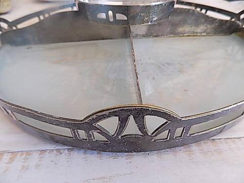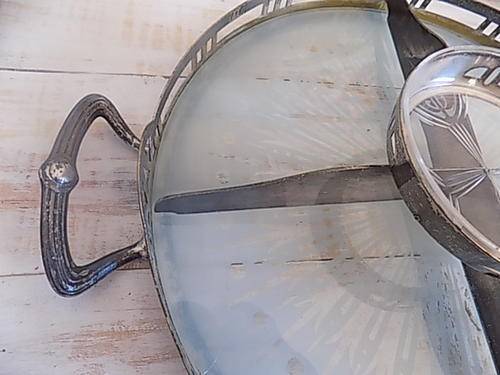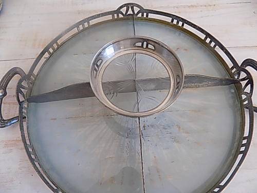 Silver Plated and Decorative Glass Snack Tray with Dip Bowl on Top