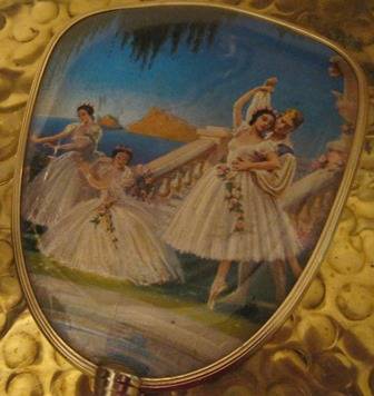 A beautiful silver plated crystal and light blue enamel powder jar , the crystal jar has not cracks or chips with a hand held ballerina mirror, the mirror is in mint condition!!
