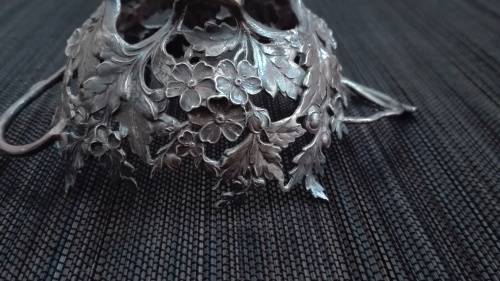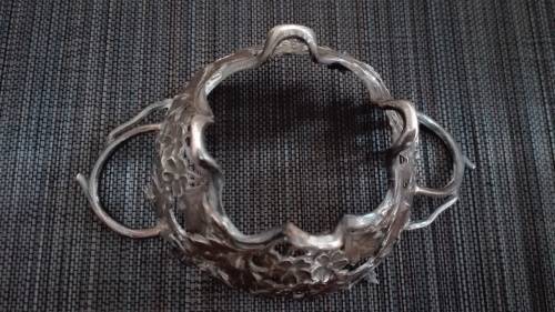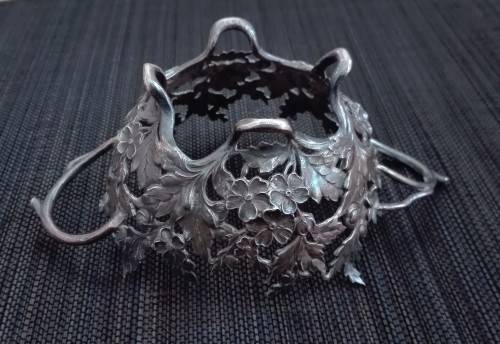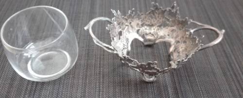 Silver Plated & Glass Dish. size of silver plated: height 5cm. width 13cm. depth 8cm. size of glass: height 6cm. width 6cm