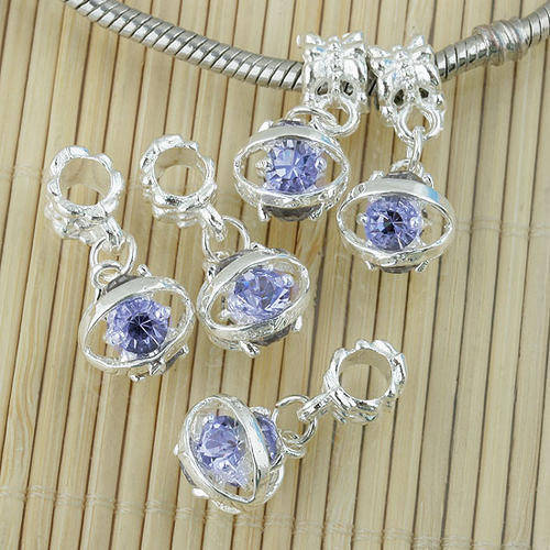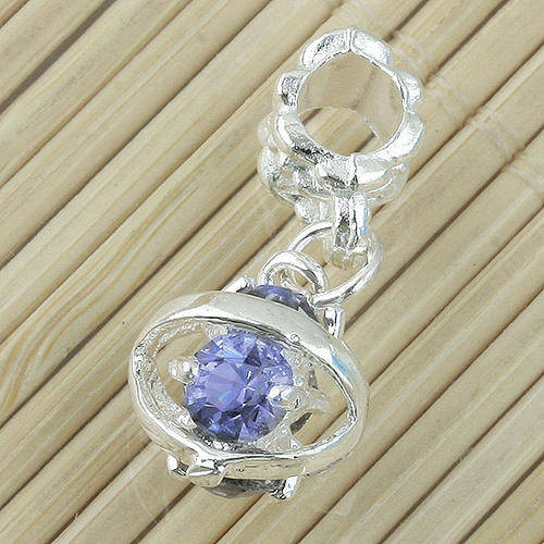 Silver Plated, Lilac crystal "Dangle" charm - Fits Pan & Euro Bracelet