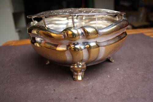 SILVER PLATED ROSE BOWL - 225 MM DIAM. - 110 MM HIGH NO MARKINGS - PLEASE HAVE A LOOK