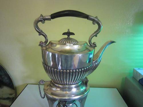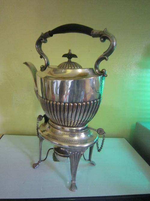 SILVER PLATED TEAPOT, WARMER STAND AND WARMER