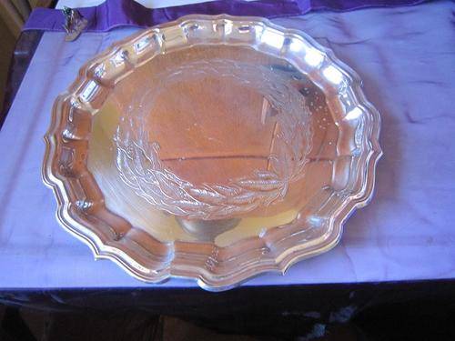 Lovely Louie Plate S P B tray in lovely condition ( slight surface scratch marks and still a bit of dirt), I cleaned this tray about 6 times and it still has a bit of dirt on it but I dont want to clean too much. I think it is lovely for a silver plated item, size 32cms wide, and I cannot find any wear on it.