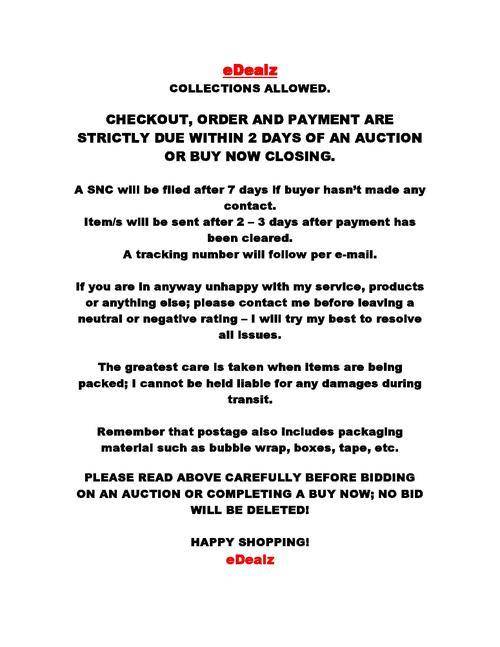R35.00 Standard shipping using one of our trusted couriers applies to most areas in South Africa. Some areas may attract a R30.00 surcharge. This will be calculated at checkout if applicable.