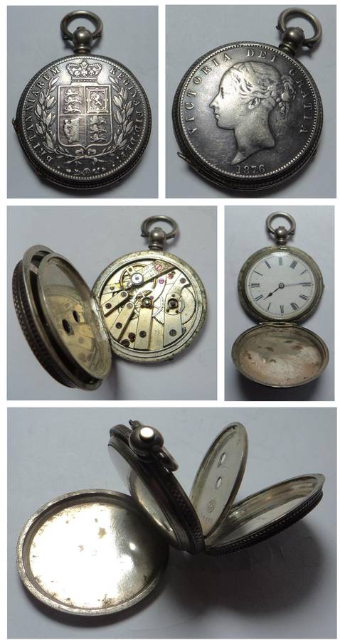 Silver Pocket Watch set with Victorian Half Crown of 1876