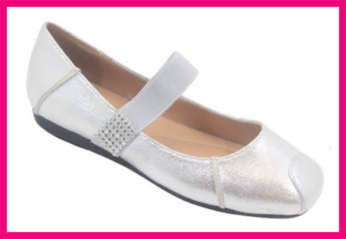 SHIMMERY SILVER PUMPS WITH DIAMANTE ELASTIC STRAP