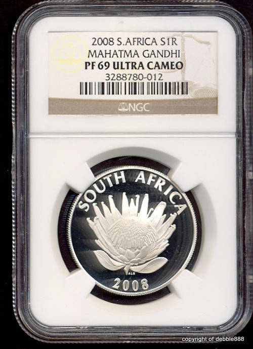 SILVER R1 *** 2008 MAHATMA GANDHI - PF69 Ultra Cameo *** 2ND HIGHEST GRADE !!!