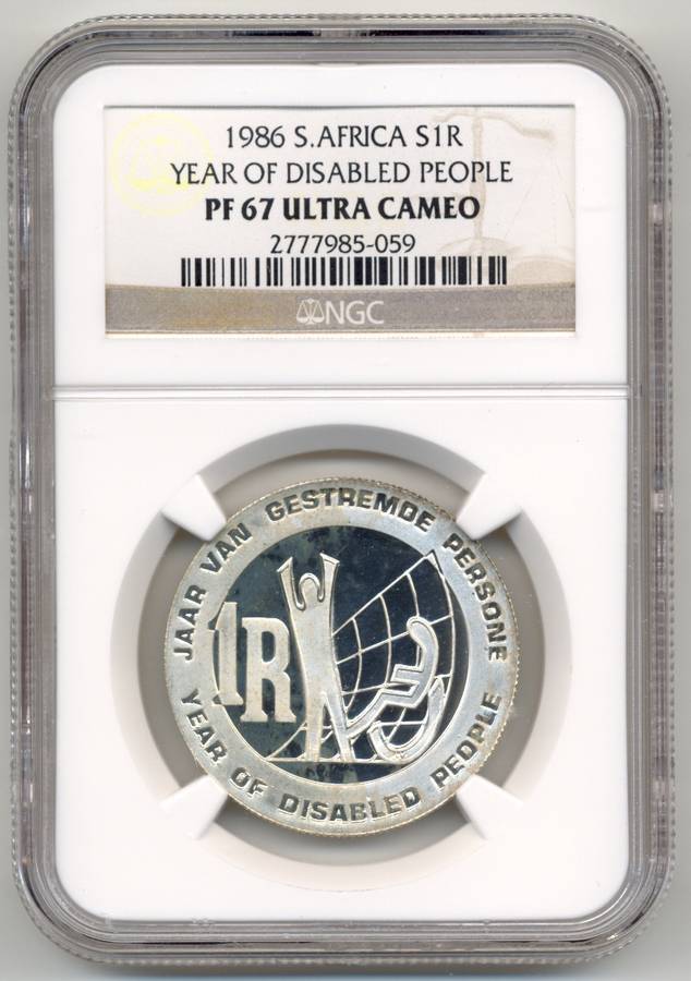 SILVER R1 SALE *** 1986 - Year Of Disabled People - PF67 UC *** 2nd finest grade *** only 6 better