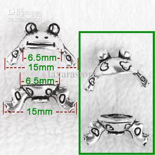 Silver tone frog charm bead cap set
