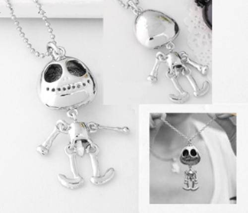 SILVER TONE SKELETON JOINTED BODY CHARM ON NECKLACE