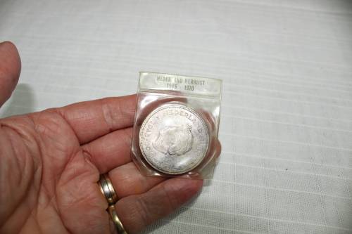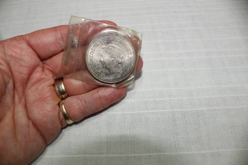 This encapsulated (sealed) uncirculated 10 Gulden is 72% silver and weighs 25grams.