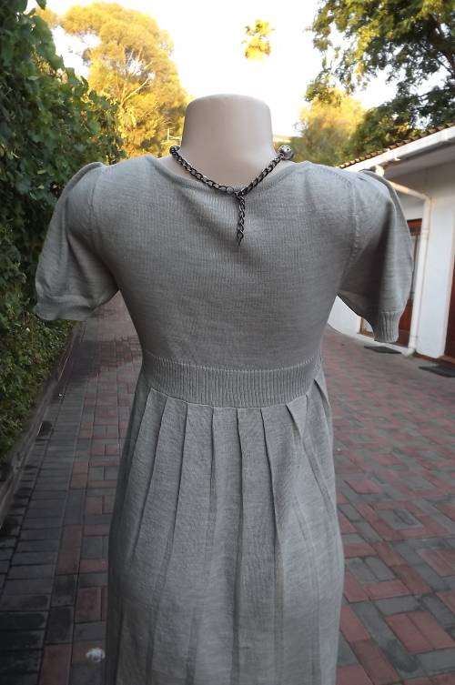 Silvergrey knitted dress in size 30/6 by FROM LOVE THREE.In acrylic knit.Pleated skirt