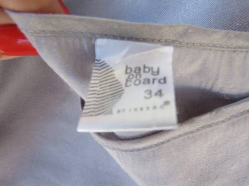 Silvergrey sleeveless blouson style maternity top by 'BABY ON BOARD' in size 34/10.Good cond.