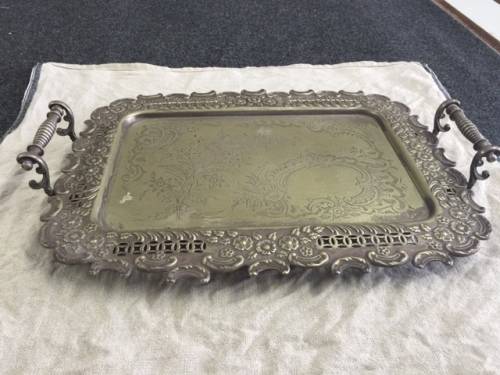lovely silverplate tray , lots of plate loss but still a lovely piece for use or to display your perfumes etc