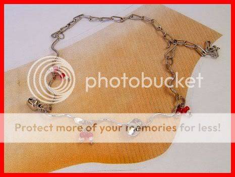 SILVERTONE ANKLE CHAIN WITH BELLS AND RED BEADS
