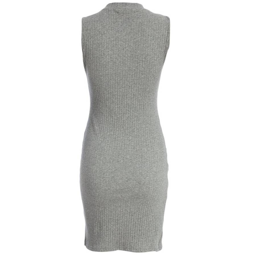 Simple Jewel Collar Sleeveless Pure Color Asymmetrical Sheathy Wrap Dress for Women